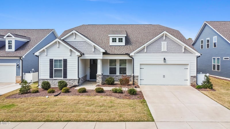 Listing details for 124 Clapper Ln, Holly Springs, NC 27540 : Beautiful ranch-style home less than 3 years old, offering a thoughtfully designed open-concept layout perfect for both everyday living and entertaining. The gourmet kitchen overlooks a spacious family room and flows seamlessly into the dining area--ideal for hosting gatherings. The private owner's suite is tucked at the rear of the home and features dual vanities and an impressive walk-in shower. Two generously sized secondary bedrooms and two full bathrooms provide comfort and flexibility for family or guests. At 124 Clapper Lane, upgrades include a tray ceiling, screened porch, fireplace, gourmet kitchen, mudroom bench, and upgraded 8' interior doors. Bedroom 3 includes a private bath, adding extra convenience and privacy. Enjoy resort-style community amenities and the ease of single-level living in this exceptional home. An unbeatable ranch opportunity you don't want to miss!