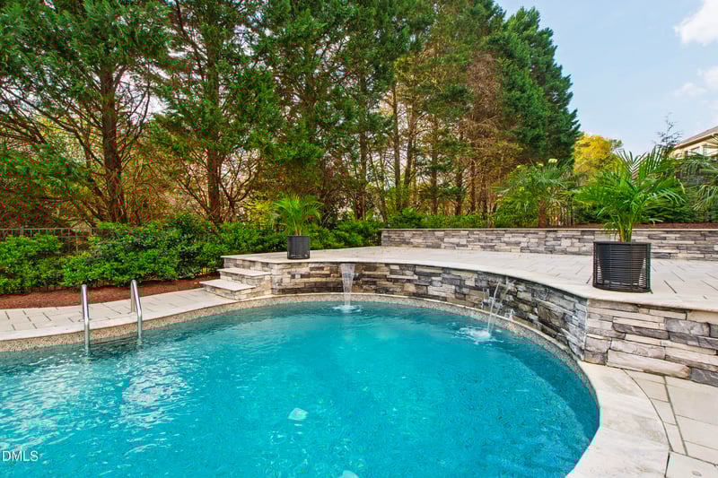 Listing details for 12408 Cilcain Ct, Raleigh, NC 27614 : Anchored towards the end of a quiet cul-de-sac in Wakefield, elevated distinction unfolds at 12408 Cilcain Court. Enduring architectural character mixes with a carefully curated, modern refresh to create a home that feels grounded yet forward-looking. Set on a manicured, fenced-in lot, this abode's presence is both refined and memorable, offering a sense of arrival from the moment you approach. As soon as you cross the threshold, you're enveloped into a contemporary, three-level layout designed for both connection and retreat. An optimally-positioned sitting room seamlessly flows into a striking dining room space, creating an easy rhythm for everyday life and effortless entertaining. At the center of the home, a thoughtfully redesigned kitchen brings together form and function, featuring a central island with gas cooktop, crisp white granite surfaces, a sleek backsplash, and stainless steel appliances. This heart of the home then effortlessly flows into a dramatic two-story family room, where expansive windows invite endless natural light. As you make your way upstairs, you're greeted by a true escape in the primary suite, complete with three walk-in closets and a private balcony. Three additional generously sized bedrooms, each with a dedicated ensuite, offer comfort and separation in equal measure. The third floor presents a flexible bonus area ideally positioned for a media room, office, or creative space - the opportunities truly have no bounds. Escape to the backyard where the experience becomes unparalleled. A stunning pool with an impressive waterfall feature is surrounded by extensive, layered stonework and expansive patio space perfectly designed for gathering or unwinding. A covered side porch provides a quiet setting for enjoying North Carolina evenings, while integrated storage throughout keeps everyday items discreetly tucked away. Recent enhancements reflect the significant investment and care of this home's current owners, including the installation of top-of-the-range windows and doors, a newly replaced driveway, hardwood flooring added to the upper level, and custom cabinetry in the primary closets. Additional upgrades such as epoxy garage flooring, exterior lighting, a water heater replacement in 2023, further contribute to the home's condition and livability. Meticulously maintained and extensively enhanced, 12408 Cilcain Court offers a rare combination of substance and style - customly crafted for those who appreciate quality without compromise.