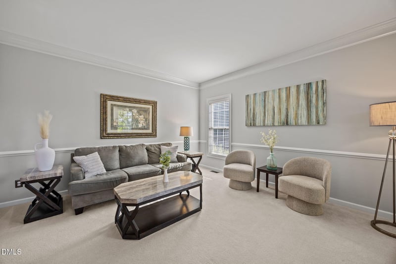 Listing details for 12420 Fieldmist Dr, Raleigh, NC 27614 : There's a sightline from the family room--past the fire, through the picture window, across the skylit sunroom, and out to the backyard--that tells you everything about how this home lives.