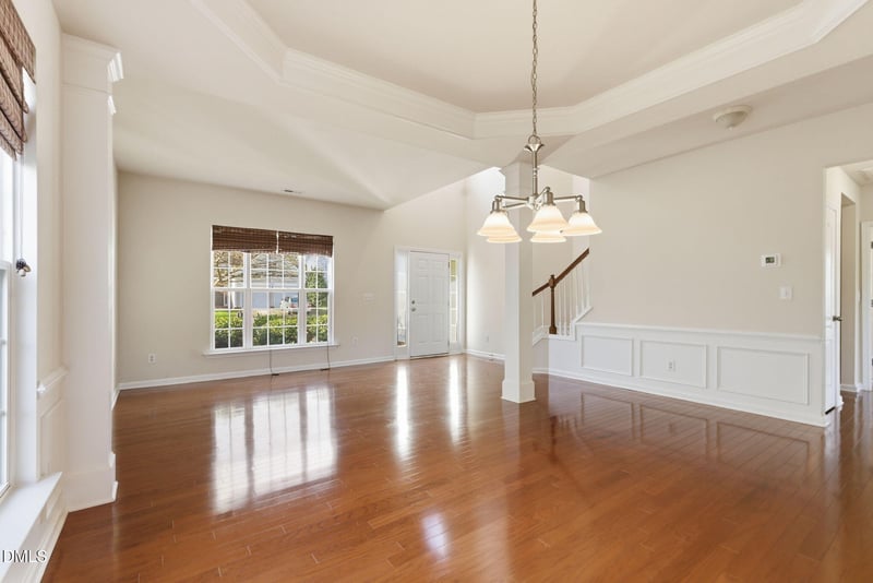 Listing details for 12520 Honeychurch St, Raleigh, NC 27614 : Fantastic and affordable four-bedroom home in a great North Raleigh location. Bright and open main level with loads of natural light and beautiful hardwood flooring throughout. Built-in shelving surrounds a cozy fireplace, and the flexible layout offers multiple living and dining options. The kitchen features an island, a pantry, tons of counter space, tiled backsplash, and nice tall cabinetry. A private 12x12 room on the main floor is perfect for a home office, exercise room, or playroom. Upstairs, the spacious primary suite includes a large walk-in closet, an en-suite bath with dual vanities, and a separate water closet. Three additional large bedrooms share a second full bath with dual vanities and a separate shower area. A nicely-sized laundry room completes the second floor. Enjoy a peaceful, fully fenced backyard with a patio and firepit. Two-car garage with separate bays and an electrical car charging outlet. Major updates include roof (2023), HVAC (2022), and water heater (2024). Five minutes to major shopping centers; eight minutes to elementary, middle, and high schools. Near multiple parks, nature preserves, and Falls Lake recreation areas. Easy access to downtown Raleigh or RDU.