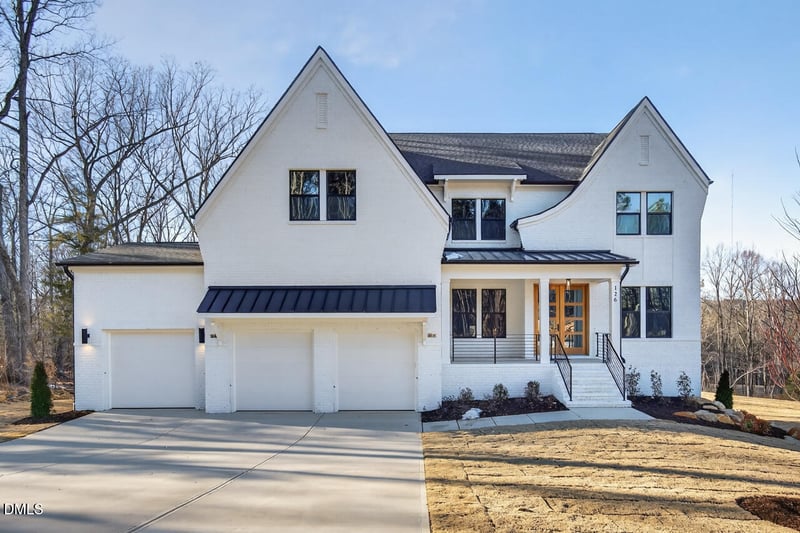 Listing details for 126 Black Bear Ct, Chapel Hill, NC 27516 : Luxury meets outdoor wonder in this beloved Herning model by J. Fuller Homes--a showcase home positioned on a 1.4 acre lot in the exclusive new phase of Morgan Ridge in Chapel Hill. This stunning two-story home blends timeless elegance with modern sophistication, offering every detail today's luxury buyers crave, including white painted brick with black trimmed windows, beautiful appliances, rubbed brass and black fixtures and finishes, surrounded by woods and rolling hills. Step inside to soaring 10' ceilings, custom built-ins flanking a gas fireplace, and a show stopping two-story family room that flows seamlessly into a designer kitchen with extended island, walk-in pantry, and butler's pantry with cabinetry. A 12' sliding glass door opens to a 10' x 18' screened porch just off the kitchen--perfect for peaceful mornings or lively gatherings--while French doors lead to a refined office space. Stylish ceiling fans adorn most rooms. The main-level bedroom with full bath is ideal for guests, while the formal dining room stuns with an accent wall and graceful style. Upstairs, the primary suite is a serene retreat with a tray ceiling, two walk-in closets (one with a window), and a spa-inspired bath featuring an oversized soaking tub and glass tile shower. Three additional bedrooms, a spacious bonus room, and 9' ceilings complete the upper level. With a 3-car side-load garage, space for a future pool, and the natural beauty of mature woods as your backdrop, this home is the ultimate blend of cutting-edge design, craftsmanship, and tranquility. Don't miss your chance to own one of Morgan Ridge's most exceptional new homes. Expected complete near end of Jan 2026. In the highly regarded Northwood High School district, 15 minutes to Chapel Hill's best restaurants& 15 min to UNC Hospital, 32 min to RDU, 20 Min to Pittsboro and all its new art, shopping and restaurants!