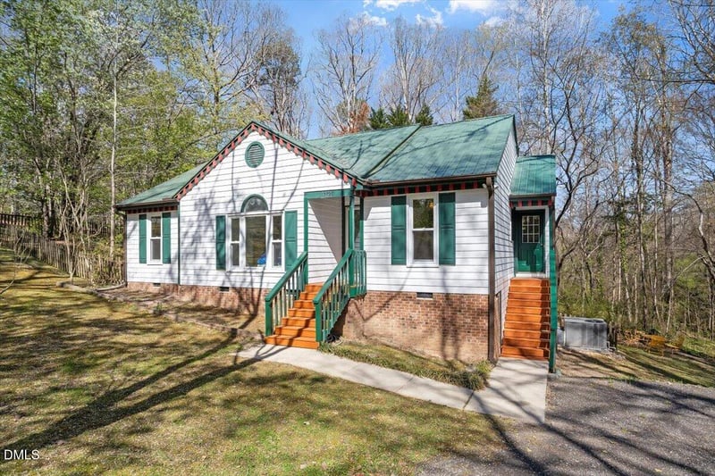 Listing details for 12725 Little Creek Dr, Raleigh, NC 27603 : Tucked away on a quiet, wooded, cul-de-sac lot, 12725 Little Creek Drive offers a perfect blend of privacy, charm, and everyday comfort in Raleigh. This inviting single-level home welcomes you with a classic exterior, accented by a green metal roof, shutters, and a warm front entry that sets the tone for what's inside. Step indoors to find a bright, functional layout filled with natural light. The kitchen features generous cabinet space and a cozy, efficient design--ideal for both daily living and easy entertaining. Adjacent living and dining areas provide a comfortable flow, with large windows framing peaceful outdoor views. Outside, the property truly shines. The spacious yard is surrounded by mature trees, creating a serene setting perfect for relaxing, gardening, or hosting gatherings. A rear deck offers a great spot for enjoying morning coffee or evening sunsets, while additional storage sheds provide practical space for tools and hobbies - one shed is also equipped with electricity. The home features new interior and exterior paint, in addition to all new flooring. Whether you're looking for a quiet retreat or a place to make your own, this home delivers a rare combination of privacy and potential--all within convenient reach of Raleigh's shopping, dining, and amenities.