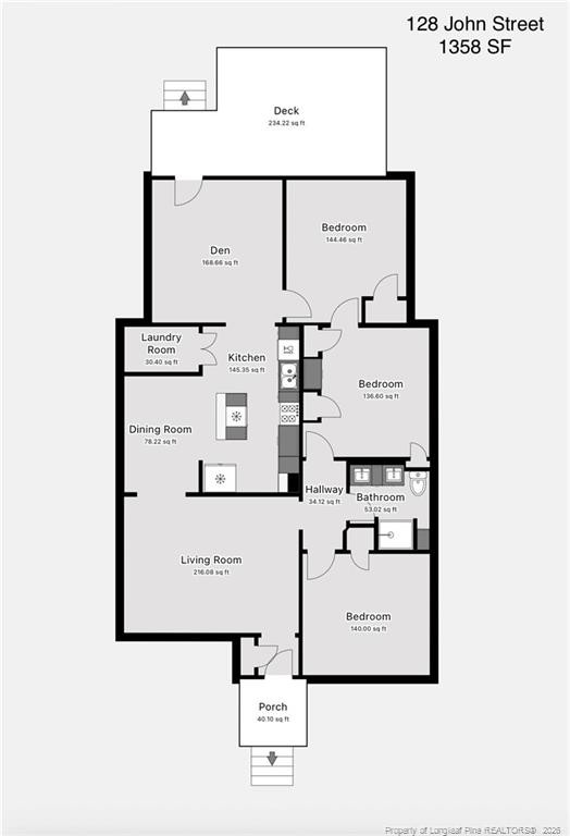 Listing details for 128 John St, Fayetteville, NC 28305 : Come see this beautiful, charming home featuring 3 bedrooms & 1 full bath, located on a picturesque street perfect for walking and family living. The home was renovated in 2018, including a new roof, updated kitchen with new cabinets, countertops, and appliances, as well as a fully renovated bathroom with updated fixtures and vanity. Enjoy the spacious family room with a cozy fireplace and an open kitchen with an island, plus an additional room off the kitchen—ideal for a home office or playroom. Step outside to a large backyard with a deck and outdoor patio, perfect for entertaining or gathering around a fire pit. Conveniently located close to shopping, restaurants, and downtown Fayetteville.