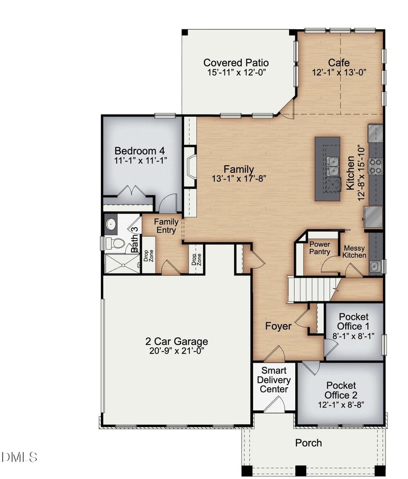 The Apex plan offers approximately 3,011 square feet with 4 bedrooms, 3 bathrooms, and a 2-car sideload garage, thoughtfully designed to balance everyday functionality with standout architectural details. The open-concept main living area flows seamlessly between the kitchen, café, and family room, creating an ideal space for both entertaining and daily living. A vaulted café ceiling fills the space with natural light, adding volume and warmth to the heart of the home.