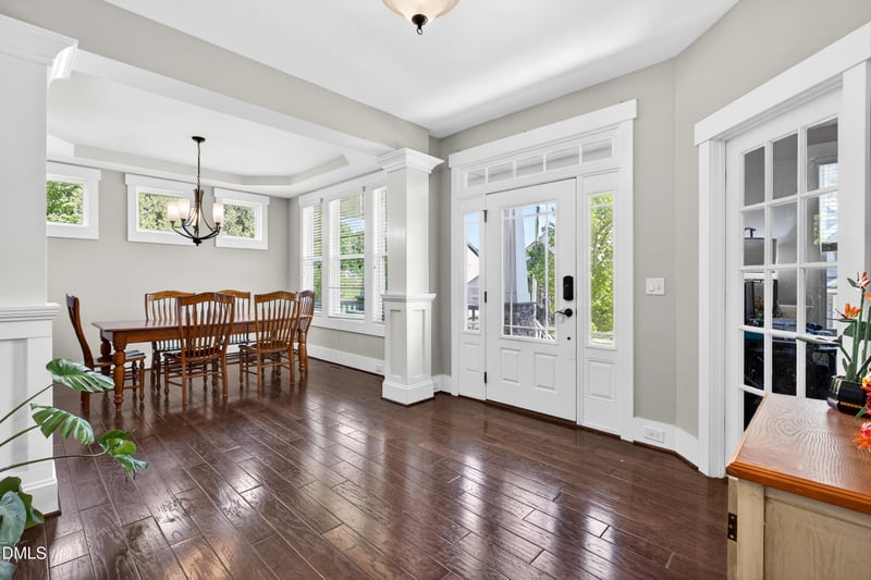 Listing details for 129 Plano Dr, Durham, NC 27703 : If you've been searching for a home with a large backyard and abundant natural light...look no further! Welcome to 129 Plano Drive in the desirable Brightleaf at the Park community near RTP. This 4-bedroom home offers a bright and spacious layout with high ceilings, large windows, and sun-filled living areas throughout. The open-concept main level features a two-story foyer and family room, hardwood flooring, and seamless flow into the kitchen and breakfast area. The kitchen is equipped with stainless steel appliances, granite countertops, and ample cabinet space, with easy access to a formal dining room for additional entertaining. A dedicated first-floor office provides flexibility for work or study, while the first-floor primary suite features a large walk-in closet and private ensuite bath. Upstairs, you'll find generously sized secondary bedrooms, a versatile loft and bonus room (that could be used as a 5th bedroom) and multiple walk-in attic storage areas offering flexibility for additional living, recreation, or storage needs. Step outside to a screened-in porch and a large, flat backyard ideal for hosting, play, or simply enjoying the outdoors (backyard is big and flat enough for multiple inflatable slides for parties if you wanted!). Residents of Brightleaf at the Park enjoy community amenities including a pool, fitness center, clubhouse, tennis courts, walking trails, and playgrounds, all conveniently located near RTP, RDU Airport, Brier Creek, Downtown Durham, and major highways.
