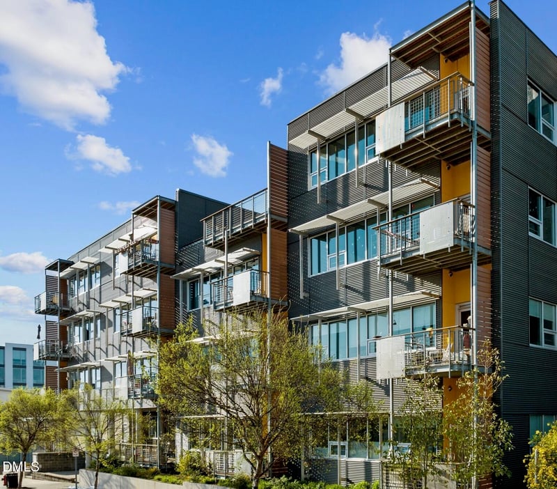 Listing details for 130 Hunt St #Apt 107, Durham, NC 27701 : Welcome to Durham's renowned Central Park CoHousing Community--where home is more than a place, it's a lifestyle. Experience the rare opportunity to live in a true built-in community, where connection and convenience come naturally. This modern and expansive, light-filled condo lives large with 2 BR and an office which could be your 3rd bedroom. Appreciate soaring ceilings, hardwood floors, and an open-concept layout designed for effortless living and entertaining. Enjoy your morning coffee or evening unwind on the private balcony which gives you ground level access to the garden. Perfect for pets. The secured building offers exceptional shared amenities, including a commercial-grade kitchen, expansive event space, two guest suites just steps away, a fourth-floor terrace, and a vibrant community garden and courtyard. Thoughtfully designed with sustainability in mind, the building also features solar panels and eco-friendly elements. Simplify your life--HOA dues cover all utilities, including water, electricity, internet, and cable. Complete with a garage parking space and additional storage, this home places you just moments from the Durham Farmers' Market, DPAC, and local ballgames. Come see what it means to truly love where you live.