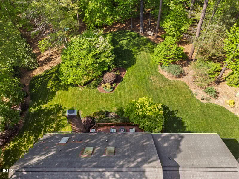 Step outside and you'll discover what truly sets this property apart. The backyard is a private sanctuary, surrounded by mature trees and vibrant greenery, with thoughtfully designed spaces for both play and relaxation. From the oversized deck, enjoy peaceful mornings with coffee, the gentle soundtrack of birdsong, and frequent visits from local wildlife--including deer and an array of native birds. Just beyond the property, a meandering creek flows directly to Falls Lake, and private wooded trails invite you to explore, offering the rare experience of having your own nature escape just steps from your door.