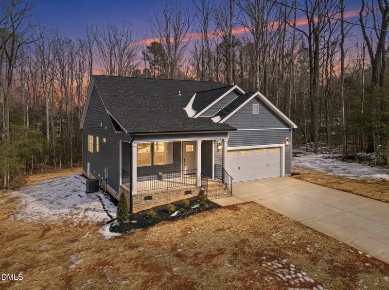 Listing details for 131 Osage Dr, Louisburg, NC 27549 : $5,000 INCENTIVE AVAILABLE!!! Brand new construction, craftsman style ranch home in gated lake community that offers an open floor plan with vaulted ceilings in kitchen with a casual dining nook that opens to family room with sliders to a screened porch and wood deck. It has a beautifully designed kitchen offering a large center island, plenty of custom cabinetry, and barn style walk-in pantry. Kitchen package includes all stainless-steel appliances. Open the door to the primary bedroom with tray ceiling, walk-in closet, primary bathroom with dual-sink vanity, large tiled luxe shower with seat, and private water closet. The secondary bedrooms feature ample closets and shared hall bath. At the entrance is an office space/den with another full bath. Gorgeous quartz slabs adorn all countertops throughout, ample laundry room, 2-car garage attached with convenient everyday entry, linens closet, coats closet, pull-down stair access to storage and mechanical room. Amenities include spacious/wooded backyard, quick access to lake, community center, swimming beaches, parks/playgrounds and much more!