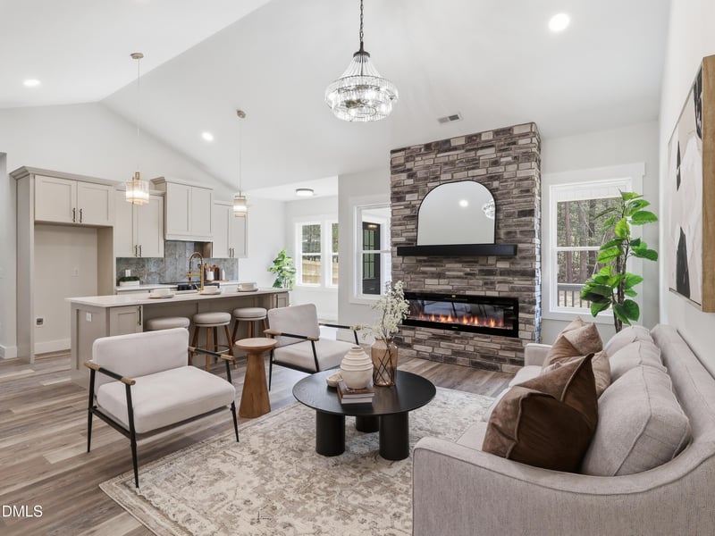 This beautifully built custom home showcases vaulted ceilings, clean modern finishes, and a thoughtfully designed open layout ideal for both everyday living and entertaining. The heart of the home is a stunning kitchen with a large quartz island, which flows seamlessly into the main living area, where a cozy fireplace creates the perfect setting for relaxing evenings and memorable gatherings.