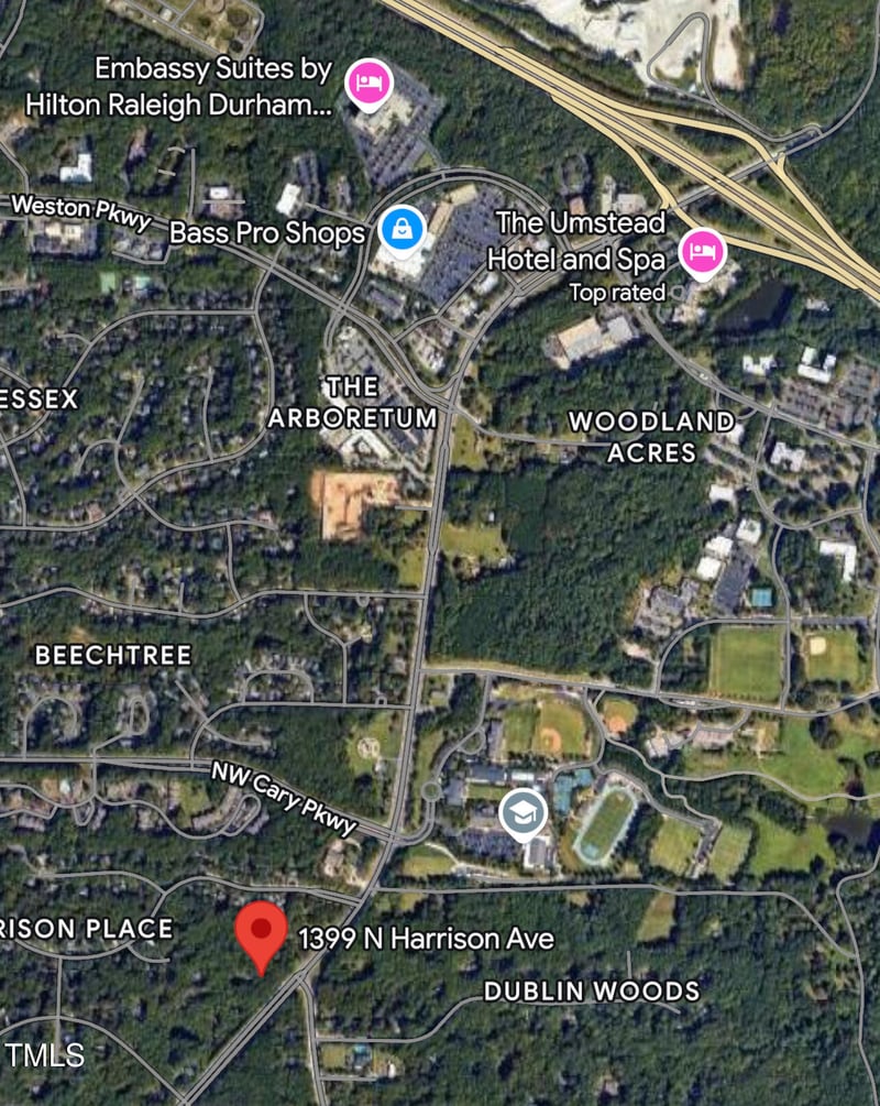 Location of 1399 Harrison Ave, Cary, NC 27513