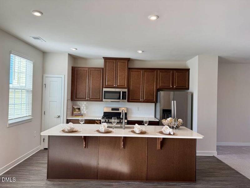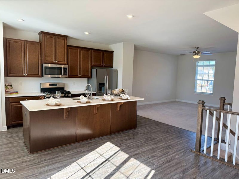 Inside, the home features a bright and spacious open floor plan on the main level, ideal for modern living and entertaining. The huge kitchen is a true centerpiece, complete with stainless steel appliances, quartz countertops, abundant cabinetry, and a large breakfast area that flows seamlessly into the living space. The open layout creates an airy feel with plenty of natural light throughout.