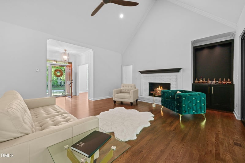 Listing details for 1409 Kings Branch Way, Raleigh, NC 27614 : Rare opportunity to own a true RANCH-STYLE home in highly sought-after North Raleigh. Situated on a private 0.59-acre lot in Kings Crest with NO CITY TAXES, this meticulously updated residence combines quality construction with modern, high-end finishes. The home features a solid brick front exterior, mature landscaping, and exceptional curb appeal. Inside, enjoy brand-new, genuine hardwood flooring throughout the main living areas and plush carpets in the bedrooms, along with fresh designer paint and updated fixtures throughout. The thoughtfully designed layout includes formal living and dining spaces, a private main-level office, and a spacious family room with vaulted ceilings and a gas fireplace. The fully renovated, professionally designed kitchen showcases a professional-grade range, oversized island, and seamless flow into the main living areas--ideal for both everyday living and entertaining. Expansive accordion glass doors open to a partially covered outdoor living deck, creating a seamless indoor-outdoor experience rarely found at this price point. The main-level primary suite offers a private retreat with dual walk-in closets and a spa-style bath featuring double vanities, a walk-in shower, and jetted tub. Generously sized secondary bedrooms and a fully renovated bath complete the main level, while the oversized upstairs bonus room provides flexible space for a media room, gym, or playroom. Enjoy close proximity to the Abbotts Creek Trail, nearby nature preserves, and an abundance of shopping, dining, and everyday conveniences--truly offering the best of both privacy and accessibility. Additional highlights include a 2-car garage, ample closet space, and a large, private yard perfect for outdoor activities and entertaining. Move-in ready and rarely available--this is a standout ranch property in one of North Raleigh's most desirable areas.