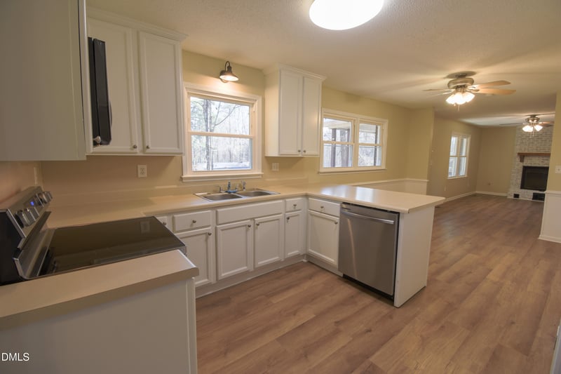 Listing details for 1412 Chamblee Rd, Zebulon, NC 27597 : What a find! This cozy 3 bedroom brick ranch is situated on 1.76 acre lot. Home has been remodeled updated bathrooms, new floors and freshly painted throughout. Featuring brick fireplace in family room. Great covered front porch. Deck on side of home around back.