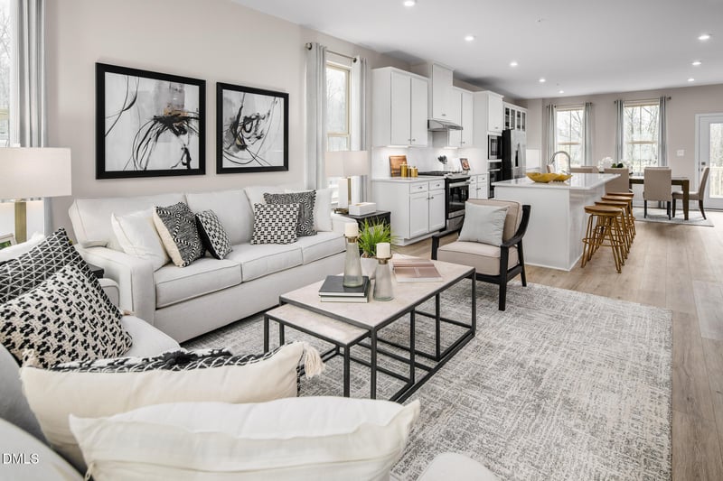 Listing details for 1423 Chowan Ave, Durham, NC 27713 : Quick Move-In Home: Welcome to Courtney Creek by Ryan Homes in Durham. This Cadence home plan is a rare wooded, end-unit homesite. All appliances are included as well as soft-close white cabinets and LVP flooring in the great room and on stairs. Enjoy your living space extended outdoors with a concrete patio and a rear deck. Proximity to RTP, UNC, and Duke. Available now!