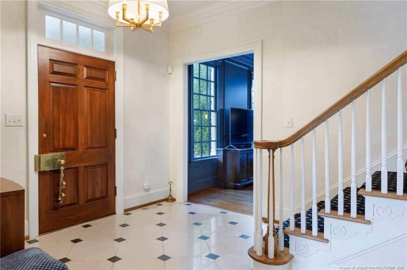 Listing details for 1425 Raeford Rd, Fayetteville, NC 28305 : Welcome to 1425 Raeford Road – a six-bedroom, six-full and two-half bath Haymount estate where timeless Georgian Revival architecture meets modern luxury. Thoughtfully designed for both grand entertaining and everyday comfort, the home features a formal dining, a study with fireplace, a breakfast nook, and a family room with fireplace. The chef’s kitchen impresses with custom cabinetry, Sub-Zero refrigerator, double ovens, a gas range, and more. A private guest suite and two half baths are also on the main level. A newly added four seasons room overlooks lush gardens and mature landscaping, seamlessly complementing the home’s classic design. Upstairs, the owner’s suite features two full baths and a walk-in closet. The second floor features three additional bedrooms, plus a versatile craft room or office, fitness area, and generous storage. Additional highlights include a walk-up attic, central vacuum, oversized garage, and separate guest quarters and full bath above the garage. Ideally located in Haymount near Highland Country Club, downtown, and Cape Fear Valley Medical Center, this residence offers refined living in one of the area’s most coveted neighborhoods. VA assumable loan 2.25%