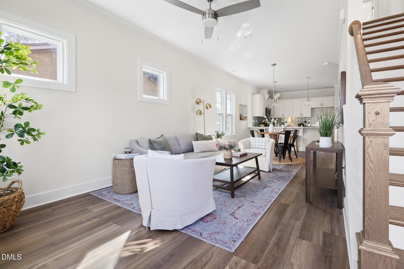 Listing details for 1455a Maplewood Dr, Durham, NC 27704 : *Builder is willing to pay for a 2-1 buydown w/ builder's preferred lender!* Backyard is now fenced-in! New construction opportunity just a short drive to downtown Durham, Duke & RTP! This floor plan offers an open layout with a first floor bedroom that would also make a great study! LVP floors on first floor, quartz countertops and upgraded cabinets & tile throughout are just a few of the features! Wait until you see the storage space on the second floor! Home will be completed in just a few weeks and comes with a great builder warranty, too!