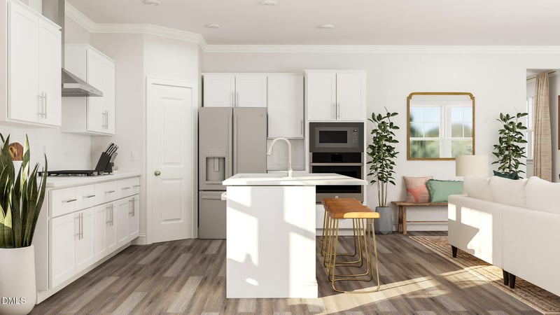 Listing details for 149 Fablewood Trl, Garner, NC 27529 : This new two-story home showcases an appealing contemporary design. The first floor features a Great Room that extends effortlessly to the kitchen and casual dining area in an open-plan layout. The covered porch is ideal for morning coffee and starlight suppers. For added privacy, the owner's suite, which has two walk-in closets, is the only bedroom on this floor. The second floor hosts a versatile bonus room and two secondary bedrooms, which both have walk-in closets.