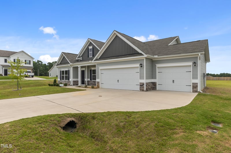 Listing details for 15 Bristow Ct, Four Oaks, NC 27524 : Welcome to 15 Bristow Court—a thoughtfully designed ranch-style home built in 2024, perfectly situated on a 0.94-acre corner lot! This move-in ready property offers a blend of modern style and everyday convenience, with 9-foot ceilings and premium finishes throughout.