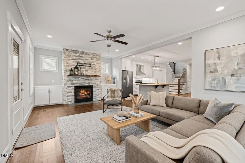Listing details for 1505 Jones St, Raleigh, NC 27610 : Charleston-inspired modern home with double front porches, a first-floor primary suite, 4 bedrooms, and 2.5 bathrooms, just 1.5 miles from downtown Raleigh, featuring custom craftsmanship and thoughtful details throughout. Hardwood floors, plenty of custom shelving and cabinetry throughout the house and a private fenced backyard. Enjoy morning coffee and evening entertaining outside on your double stacked porches. The first floor boasts a gas log fireplace in the living room and open floor plan seamlessly bringing you to the kitchen featuring a live edge wood center island, granite countertops, ample cabinetry and pantry space for the cooking enthusiast! Upstairs you will find two sizable bedrooms, a large bonus room perfect for entertaining with access to the second-floor porch or use it as a spacious 4th bedroom. Completing the second floor you will have a partially finished place used as a home gym. This stylish home with high end finishes is the perfect place to experience all that Raleigh has to offer.