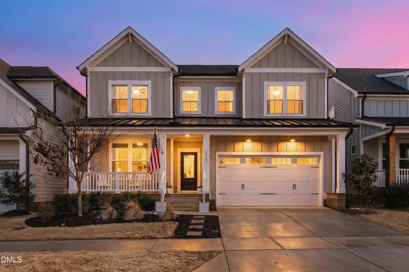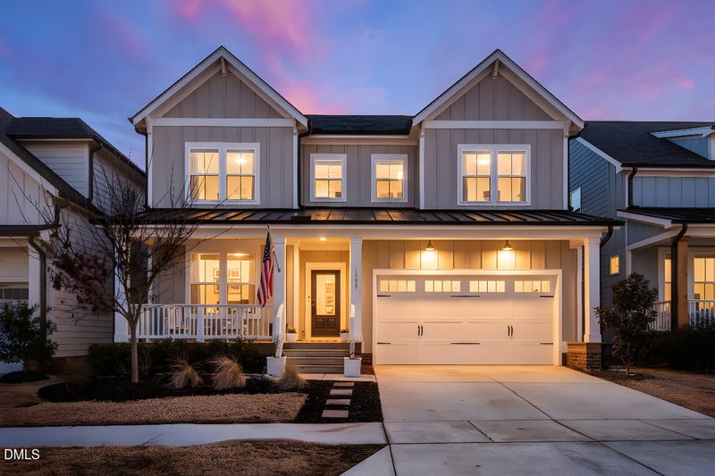 The extended screened porch spans nearly the entire width of the home, creating a true outdoor living room. Oversized sliding doors fill the southern-facing interior with natural light while connecting the gourmet kitchen and family room to a private backyard retreat. The fully fenced yard sits on one of the deepest lots on the street and features multiple gathering spaces, garden beds, and room for a future pool. A rear gate opens directly to the community walking path, providing privacy and easy access to Wendell Falls' signature amenities, including the farmhouse pool, café, parks, trails, and playgrounds.