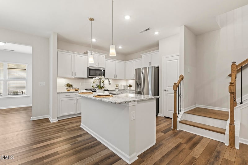 Listing details for 1518 Smoky Mountains St, Durham, NC 27713 : Like new, without the wait. This move-in-ready home offers bright, open living spaces and a smart layout designed for everyday living. The main level features an open-concept floor plan with luxury vinyl plank flooring, recessed lighting, and easy flow between the living, dining, and kitchen areas. The kitchen includes a spacious center island, granite countertops, ample cabinetry, and stainless steel appliances, providing both workspace and storage. Just off the kitchen, an extra sunroom adds flexible space that can be used in a variety of ways, from a reading nook to a home workspace or dining area. Upstairs, the primary bedroom offers generous space and natural light. The en-suite bathroom features a dual-sink vanity and an oversized walk-in shower. Additional bedrooms provide flexibility for guests, work-from-home needs, or hobbies. Fresh interior paint and neutral finishes throughout create a clean, updated feel and allow for easy personalization. Enjoy time outdoors on the private rear patio. The attached garage adds options for parking, storage, or a home-gym for your everyday convenience. Located in an established area with surrounding homes already completed, the property is conveniently close to shopping centers, grocery stores, local restaurants, parks, and everyday services. Easy access to major roadways connects you to nearby entertainment and daily destinations.