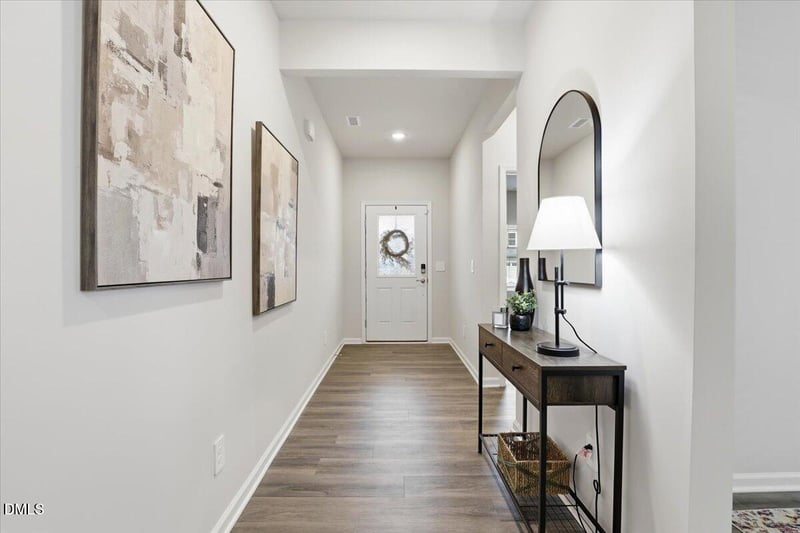 This move-in-ready Garner home features a bright and airy main level with a first-floor bedroom and full bath, perfect for guests, a home office, or multi-generational living. The heart of the home is the open family room and gourmet kitchen, complete with a large center island, quartz countertops, gas range, built-in oven and microwave, abundant cabinetry, and a walk-in pantry. A formal dining room provides the ideal space for entertaining, while fresh neutral paint and a backyard patio add to the home's appeal.
