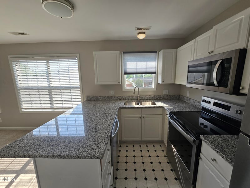 Listing details for 1523 Bulon Dr, Cary, NC 27518 : Welcome to this stunning and move in ready condo nestled in a quiet and highly sought after Cary neighborhood! Offering the perfect blend of modern luxury and unbeatable convenience, this beautifully updated open floor plan gem features fresh paint, newer plush carpeting, and chic modern light fixtures throughout. Step inside to a sun drenched living space that flows seamlessly into a bright and chef inspired kitchen boasting newer stainless steel appliances, a spacious pantry, and a large breakfast bar that is perfect for entertaining. Just off the living area, step out onto your private balcony and enjoy your morning coffee with serene views of the meticulously maintained landscaping. Retreat to the expansive master bedroom, highlighted by soaring vaulted ceilings, a massive walk in closet, and a luxurious private bathroom complete with elegant granite countertops and a soothing whirlpool tub. The generous second bedroom is bathed in natural light from large windows and sits just off the hallway right next to the second full bathroom, making it an ideal setup for guests or a home office. Truly turnkey, even the washer and dryer are included! Enjoy resort style and low maintenance living with an HOA that covers a sparkling community pool, an engaging playground, plus water and sewage utilities. Location is everything and you are just moments away from vibrant shopping, amazing restaurants, and a fantastic local kids park. Plus, you will enjoy an effortless commute with close proximity to NC State and just a 10 mile drive to Wake County Community College. This pristine and sunlit retreat checks every single box and will not last long, so schedule your showing today!