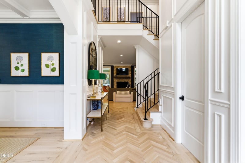 Listing details for 1528 Eglantyne Ct, Raleigh, NC 27613 : Tucked away on 3.06 private acres in North Raleigh, this 7,488 sq ft custom home offers 5 bedrooms, 5 full baths, and a fully finished walkout basement plus saltwater pool designed for both everyday living and exceptional entertaining. The main level features 3/4'' live sawn white oak floors, custom cabinetry, designer lighting, and extensive trim details throughout. The chef's kitchen is anchored by a 48'' ILVE range, Miele dishwasher, refrigerator/freezer columns, and a separate scullery kitchen with a corner window overlooking the wooded backyard. Just off the oversized garage, the thoughtfully designed mudroom offers custom white oak locker-style cabinetry, a warm and functional space that greets you with an inviting ''welcome home'' each day. The owner's suite is a true retreat with custom trim, curated lighting, and a massive, luxurious custom closet with its own stack washer and dryer. The walkout basement includes a theater room, home gym, and full bar/kitchenette. Outdoors, enjoy a 40' x 20' heated saltwater pool, outdoor kitchen with pizza oven and built-in grill, fire pit, fenced garden, custom treehouse, and built-in basketball hoop. Additional highlights include spray foam insulation, natural gas heat, three heat pumps, whole-house generator, tankless water heater with instant hot water, whole-house water filtration system, oversized garage with dog wash, circular driveway, and expansive parking. Exceptional space, thoughtful design, and true livability -- all on a rare 3-acre North Raleigh setting.