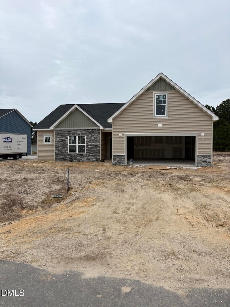 Listing details for 1529 Eastbay Dr, Fayetteville, NC 28312 : Hard to find sprawling Ranch-and-a-half plan with bonus/4th bed and full bath up-Perfect for entertaining guests, a hangout, or even a second primary suite. Enjoy a tranquil setting with natural views and easy highway access to all amenities and Fort Bragg. A spacious foyer leads to an open-concept great room and kitchen. Designed with both elegance and convenience in mind, the great room with raised ceiling opens to the patio and features an electric fireplace for a cozy focal point. The gourmet kitchen boasts white shaker cabinets, granite countertops, Daltile Mesmerist 3X12'' subway tile in ''Spirit'' in an offset pattern, and a suite of SS appliances including a microwave, dishwasher, and smooth top range. Matte black fixtures throughout the home add a modern touch. A private hall off the Great Room leads to three main-floor bedrooms. The spacious primary suite includes a vaulted ceiling, dual WICs, and access to the en suite with dual sink vanity with quartz countertop, walk-in shower with tile niche and separate spa-like soaker tup with tile surround, WC for privacy and linen closet for storage. Stylish and durable Luxury Vinyl Plank (LVP) flooring flows from the entrance throughout the main living, kitchen, laundry and baths for a seamless and low-maintenance look. Outside enjoy a covered front porch, an extended rear patio on a sprawling .42 ac lot. Low-maintenance vinyl siding, stone and board & batten accents adorn the home. Baywood Terrace is a 22-lot community on one cul-de-sac street in the Eastover area of Fayetteville, with NO city taxes. Minutes to shopping, dining, and area parks. Baywood Golf Club adjacent, the community includes a 1 year Golf/Tennis/Pool membership! $10K Use As You Choose Builder/Preferred Lender Incentive. LIsting Agent is Seller/Builder relative. Anticipated Completion April 2026.