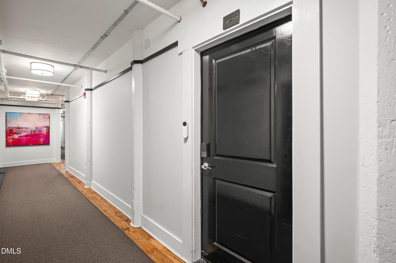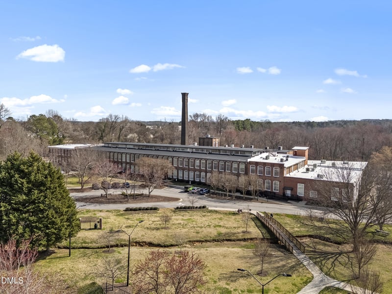 Listing details for 1535 Caraleigh Mills Ct #218, Raleigh, NC 27603 : Industrial edge meets modern cool in this two-bedroom residence set inside one of Raleigh's most iconic fully restored mills. Soaring vaulted ceilings, raw original floors, and oversized historic windows flood the space with natural light, celebrating the building's past while delivering the modern style today's lifestyle demands. The open-concept layout flows effortlessly from kitchen to dining to living--ideal for relaxed everyday living or hosting friends. Striking modern staircase leads to a lofted office space, perfectly tucked away for work, study, or creative pursuits. One of the home's most distinctive features? A clever hidden door leading to the primary suite, adding a playful architectural surprise and a sense of private retreat. Inside, the primary bedroom showcases exposed beams, historic character, and soft natural light filtering through transom windows. A spacious second bedroom on the main level offers flexibility for guests, hobbies, or additional workspace. Original wood floors anchor the home in authentic mill character, while updated baths and a generous laundry area bring everyday convenience. A deeded storage unit conveys with the condo--an added bonus rarely found in urban loft living.