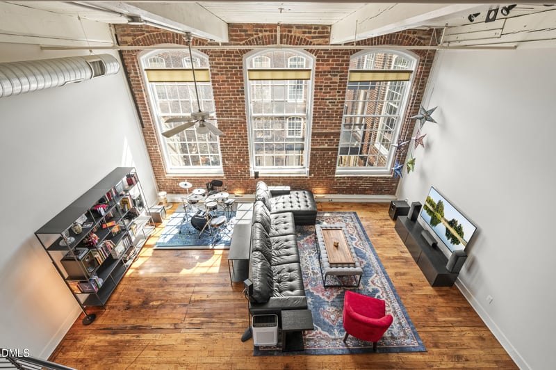 Listing details for 1535 Caraleigh Mills Ct #218, Raleigh, NC 27603 : Industrial edge meets modern cool in this two-bedroom condo set inside one of Raleigh's most iconic fully restored mills. Soaring vaulted ceilings, raw original floors, and oversized historic windows flood the space with natural light, celebrating the building's past while delivering the modern style. The open-concept layout flows from kitchen to living. Modern staircase leads to a lofted office space, perfect for work, study, or creative pursuits. A clever hidden door leading to the primary suite. Inside, the primary bedroom showcases exposed beams, historic character, and soft natural light filtering through transom windows. A spacious second bedroom on the main level offers flexibility for guests. Original wood floors anchor the home in authentic mill character, while updated baths and a generous laundry area bring everyday convenience. A deeded storage unit conveys with the condo--an added bonus rarely found in urban loft living. Beyond your front door, the community delivers true lifestyle amenities: a state-of-the-art fitness center, pool, community garden, and dog area, all within a secure gated setting. Stylish and distinctive this is urban living at its best in the heart of Raleigh--and with rentals allowed, it's also an opportunity for investors.