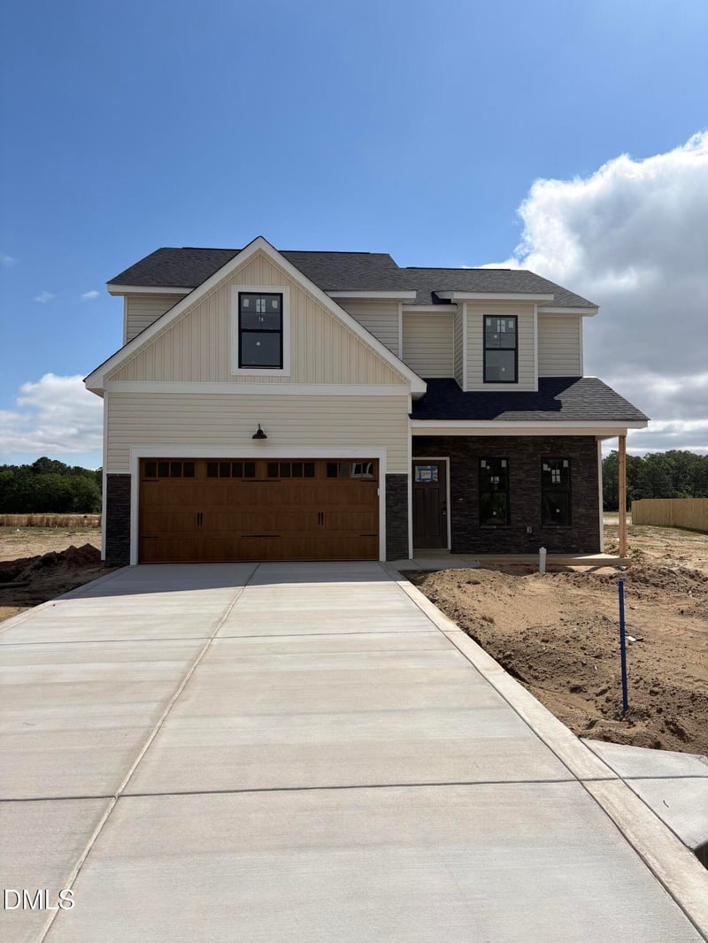 With no shortage of curb appeal, this home presents with black vinyl windows, modern-looking stacked stone and welcoming front porch, all on a flat .38 ac lot with natural views. First photo is AI generated based on selections to show potential. Photos will be updated as construction progresses. LA is seller relative.