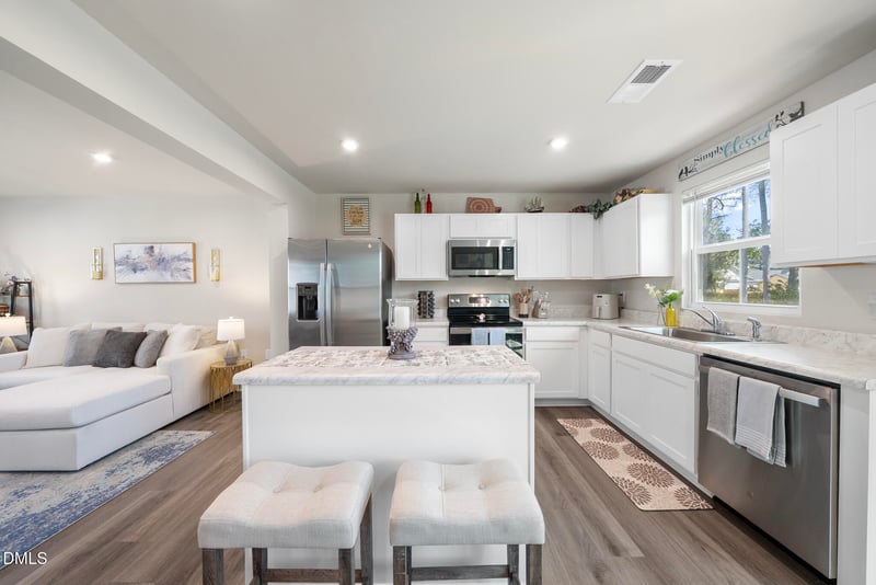 Listing details for 1538 Indigo Creek Dr, Zebulon, NC 27597 : Gorgeous, like-new townhome - a rare find! The open kitchen with a large island and stainless steel appliances flows easily into the living and dining spaces, making it ideal for both daily living and entertaining. This home is filled with tons of natural light, giving it a bright and inviting feel. Upstairs, you'll find three spacious bedrooms, including a private owner's suite with a full bath and large walk-in closet. The lower-level flex space provides the perfect spot for a home office, gym, or bonus living area. Step outside to enjoy a generously sized backyard and patio - a standout feature that's ideal for relaxing, entertaining, or play. With low-maintenance living, community amenities, and a convenient location, this townhome truly delivers!