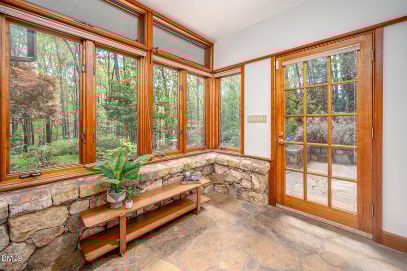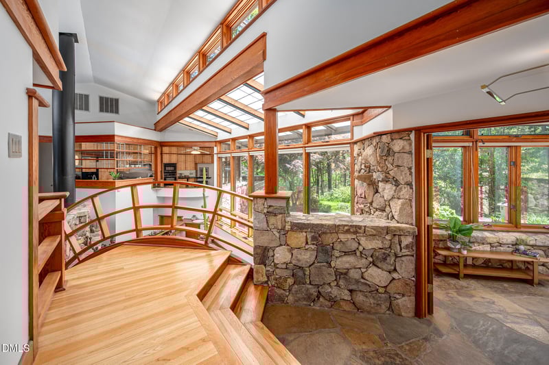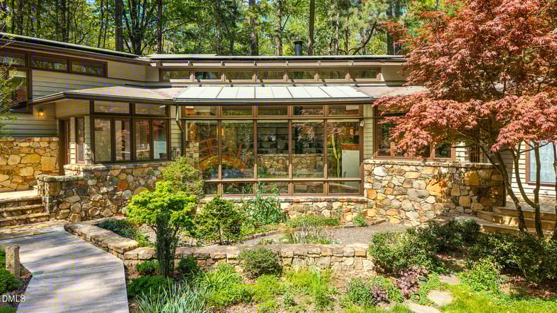 Listing details for 1601 Halifax Rd, Chapel Hill, NC 27514 : 1601 Halifax is the Frank Lloyd Wright-inspired home in the heart of Chapel Hill you never knew existed! Not all for sale properties come up on Zillow, so add another search engine if you want to see everything. This utterly unique home has soaring ceilings, clerestory windows, indoor water features and a koi pond, a two car garage with hydraulic lift, a basement with a home gym and hobby shop, and the prettiest grounds in town. This 3702 sf home features a private owners suite on one wing of the house, and on the other wing, two bedrooms and a suite. You'll also find a wine cellar capable of housing 1500 bottles of wine, a mystery bookshelf, and a command center office with soaring views. As if that wasn't enough, this home has custom cabinetry, vintage built-ins, spacious REMODELED bathrooms by Cedarburg designs, massive closets and loads of storage. It's shocking when you consider that you could have all this AND walk a back path to the public library, connect to the trails around town, ride your bike to Whole Foods, or take the free bus for a few minutes into campus. You're close to it ALL here, but have a beautiful chunk of land. Whether you always dreamed of throwing Gatsby-like parties or enjoying a quiet respite in your sexy palace of a home, 1601 Halifax has you covered.