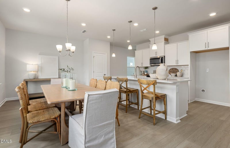 Listing details for 1603 Tamarisk Ln, Durham, NC 27703 : The Jekyll plan is a beautifully upgraded tri-level townhome in the new Everton community near Brier Creek! This 4-bedroom, 3.5-bath home includes a private guest suite with a walk-in shower on the entry level for added comfort. On the second level, you'll find a bright, inviting kitchen at the front of the home, featuring stylish white cabinetry that brings a modern, elegant touch. At the back, a spacious gathering room opens to a private deck—perfect for entertaining! The owner's suite impresses with a stunning tray ceiling with recessed lighting and a luxurious tiled shower with a bench in the owner's bath. Outdoor living is easy with both a first-floor patio and a second-level deck. Built with Pulte's Energy Advantage, this home offers exceptional energy efficiency and savings. Plus, enjoy smart home wiring throughout, including smart thermostats for climate control, pre-wired connections for flat-panel TVs, and a Ring doorbell for enhanced security. The Everton community provides outstanding amenities such as high-speed cable and internet, lawn maintenance, a pool, fitness center, cabana, tot lot, dog parks, and a disc golf course!