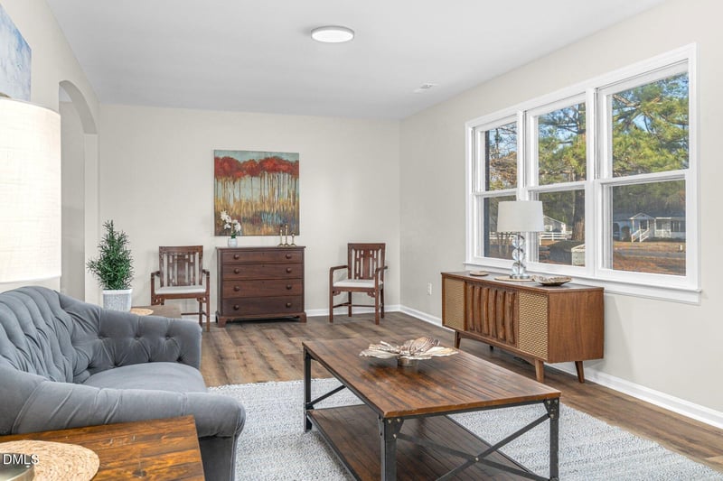 Listing details for 1605 Crockers Nub Rd, Middlesex, NC 27557 : Welcome to 1605 Crockers Nub Road — a beautifully refreshed brick ranch offering the perfect blend of classic charm and modern updates on a spacious 1.05-acre homesite in the peaceful countryside of Middlesex. This inviting 2-bedroom, 1-bath home features fresh interior paint throughout, brand-new flooring, and updated light fixtures that give the home a bright, clean, and move-in-ready feel. The eat-in kitchen has been tastefully updated with new quartz countertops, a new stainless steel range and vent hood, and a window overlooking the expansive backyard — perfect for enjoying peaceful views while you cook. The kitchen opens directly to the rear patio, making indoor-outdoor living and entertaining easy and convenient. Outside, enjoy a concrete driveway, an attached one-car carport, and a detached storage shed for tools, hobbies, or additional storage. The charming front deck is ideal for rocking chairs and morning coffee, while the large backyard offers plenty of room for gardening, play, pets, or entertaining. Located just minutes from Raleigh, Smithfield, and Wilson, this property offers the privacy and tranquility of country living with convenient access to shopping, dining, and major highways. A wonderful opportunity for anyone looking for a well-maintained, updated home on acreage — this one is a must-see!