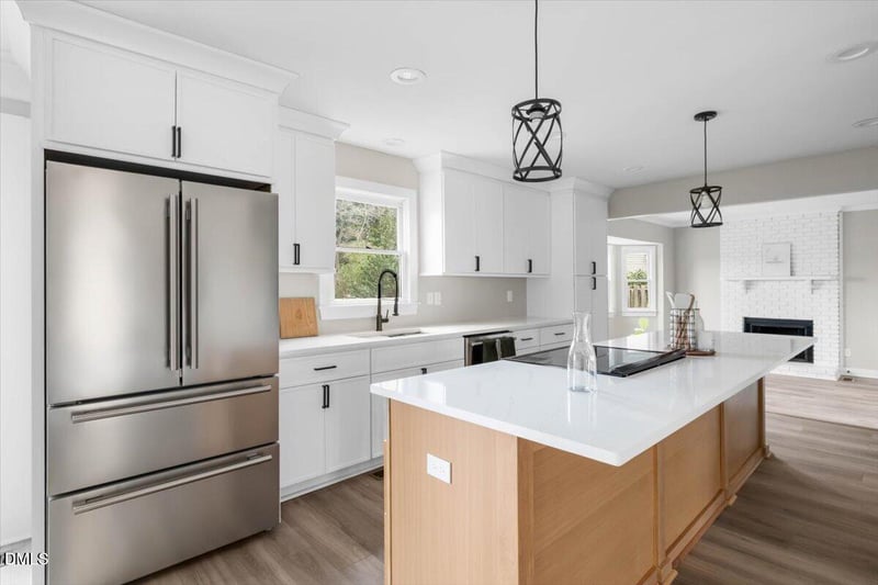 The fully renovated kitchen is the heart of the home, featuring quartz countertops, new stainless-steel appliances, soft-close cabinetry, and a striking center island perfect for casual meals or hosting guests. Every detail reflects the intentional design and quality execution that define CQC Home's work.