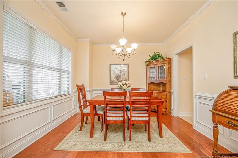 Listing details for 1655 Rock Creek Ln, Fayetteville, NC 28301 : Charming landscapes surround this one-level craftsman in desirable North Ridge Park community. Inviting vibes only as you enter this polished, well-made home. Formal Dining or Social Living room with chandelier. Kitchen equipped with raised serving bar, pantry, SS dishwasher/range/microwave, refrigerator, tile back splash, & breakfast area. Family room with plentiful windows offering natural light galore, ceiling fan, electric fireplace with tile surround & custom mantle. Master bedroom with drop down trey, ceiling fan, his & hers closets. Master bathroom with separate shower, tub, & dual vanities. Three Guest bedrooms w/ ceiling fans (Bonus/4th bedroom). Full Guest bathroom with marble tops & vanity with storage. OTHER MISCELLANEOUS features: Soaring ceiling heights, wide plank hardwoods in main areas & hallways, ceramic tile in wet areas, carpet in bedrooms, extensive trim moldings, covered front porch, covered rear porch, 12x13 rear patio, oversized garage with additional storage. Northside of town, close to Ft Bragg, 295 to I95, Methodist University, Fayetteville State University, shopping, and restaurants and MORE. Schedule YOUR tour before this one gets gone!!!