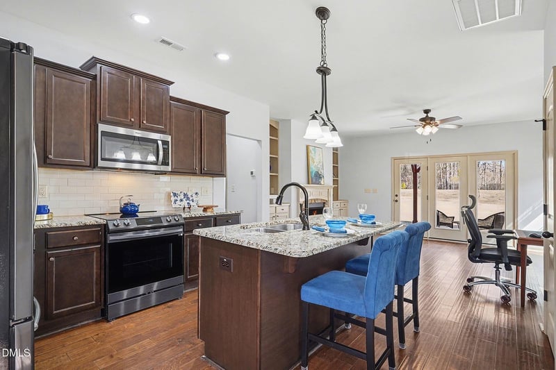 Bathtub/Shower Combination, Bookcases, Built-in Features, Ceiling Fan(s), Chandelier, Double Vanity, Granite Counters, Kitchen Island, Open Floorplan, Pantry, Master Downstairs, Shower Only, Smart Light(s), Smart Thermostat, Smooth Ceilings, Walk-In Closet(s) and Wired for Data