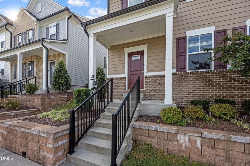 Listing details for 17 Rambler Ln, Durham, NC 27703 : Welcome home to this beautiful end-unit townhome in sought-after Davis Park Townes, offering 3 bedrooms, 2.5 baths, and a 2-car garage! The bright, open-concept main level features easy to maintain flooring throughout and a spacious living room highlighted by a modern accent wall, seamlessly flowing into the kitchen—perfect for everyday living and entertaining. The kitchen boasts granite countertops, a Bosch refrigerator, stainless steel appliances, abundant cabinetry, under-cabinet lighting and a convenient breakfast bar. Upstairs, enjoy a versatile loft space with open railing, laundry room, and a serene primary suite with tray ceilings, a large walk-in closet, linen closets, and an ensuite bath featuring dual vanities and a walk-in shower. Two additional bedrooms and a full bath complete the upper level, offering comfort and flexibility for guests, home office space, or hobbies. Custom shades throughout. EV charger in garage. Residents of Davis Park Townes enjoy exceptional community amenities, including a neighborhood gazebo with a fireplace, grilling stations, which can be reserved for private outdoor events, a playground, a dog park, and scenic walking trails woven throughout the community—perfect for relaxing, socializing, and outdoor enjoyment. Ideally located in the heart of RTP on a quiet private street, this home offers quick access to RDU, shopping, dining, corporate complexes, universities, and major highways, making everyday living and commuting effortless!