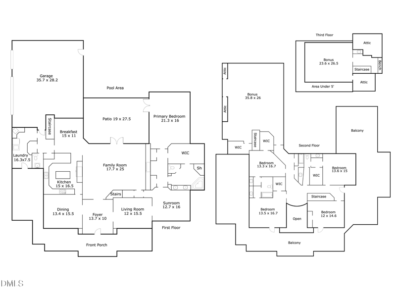 Inside, a grand foyer welcomes guests. Intricate trim, molding, and archways throughout. Host in the sitting room or family room with carved marble fireplace, built-ins, and views of the pool. The beautiful chef's kitchen connects to both a casual eat-in area and formal dining room. The main-floor primary suite has direct access to the pool courtyard and a charming sun room. Upstairs are four more bedrooms, two with direct access to the upper balcony. The massive bonus room opens up endless possibilities, and on the third floor you'll find another large bonus space perfect for a media room, complete with an adjacent wet bar.