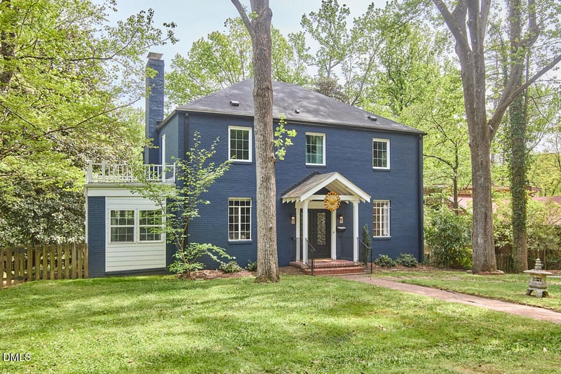 Listing details for 1712 Vista St, Durham, NC 27701 : This beautiful renovated Georgian home in Duke Park grabs your attention from the get-go with its deep blue exterior and classically good looks. The scene of a 2019 Gail Crabtree renovation, the current owners have showered good taste onto every square inch of the 3-bedroom, 2.5 bath floor plan. Generously-sized rooms combined with tall ceilings offer clear sight lines for hosting and supervision, and large windows provide a wide aperture for the sun to bake your pup-tatoes and keep your houseplants looking their best. A smart office sits off the living room and could easily be repurposed as a play space or craft room. Transition upstairs to the bedroom level, where you'll find three bedrooms, including a primary suite. We know - it will be hard not to ogle the stylish primary bathroom. An elevated screened in porch delivers panoramic views onto a wooded buffer behind the house, and functions as a perfect overlook for keeping an eye on your chickens, should you choose to populate the included chicken coop. A detached but finished basement room could function as an overflow office, workshop, art studio, or yoga den for those times where you need to be out of view and hearing of any louder or more demanding roommates. The location is a quick bike ride to your favorite local rooftop cocktail bar or the farmer's market, and a short walk to Duke Park to let your dog get its zoomies on while you enjoy some solid people-watching. Don't blink, or you might miss this one.