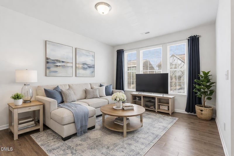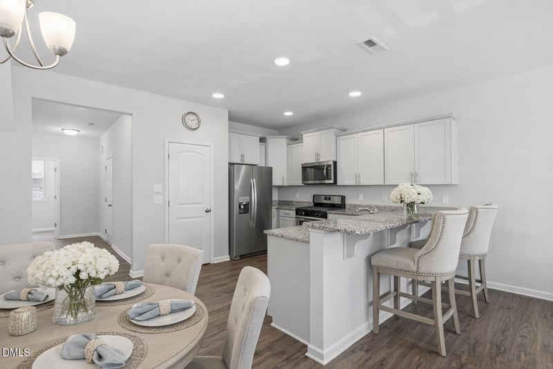 Listing details for 1717 Shady Oaks Dr, Wendell, NC 27591 : Are you looking for a low-maintenance home in one of Wendell Falls' most desirable communities? This beautifully maintained townhouse offers 3 bedrooms, 2.5 baths, 1,682 square feet, and a 1-car garage with additional parking. A covered front porch welcomes you inside, where laminate hardwood flooring flows throughout the main level. The living room greets you upon entry, creating a comfortable and inviting space for everyday living. The eat-in kitchen is designed for both function and style, featuring granite countertops, stainless steel appliances, a gas range, pantry, and bar seating, along with space for a dining table. A convenient half bath and interior access to the garage complete the main level.Upstairs, two secondary bedrooms with generous closet space share a hall bath with a tub/shower combination, along with a linen closet for added storage. The laundry closet, complete with washer and dryer, is centrally located for convenience. Down the hall, the spacious primary suite features oversized windows, a large walk-in closet, and a well-appointed bath with a soaking tub, separate shower, dual-sink vanity, and private water closet. Plush carpeting extends throughout the upper level. Outside, the home offers a one-car garage with a parking pad accommodating a second vehicle, plus additional street parking for guests. Enjoy all that Wendell Falls has to offer, including a fitness center, café, resort-style pool, playgrounds, lakeside pavilion, and an active community atmosphere with amenities designed for both relaxation and connection. Experience the ease of townhome living paired with exceptional community features--schedule your showing today.