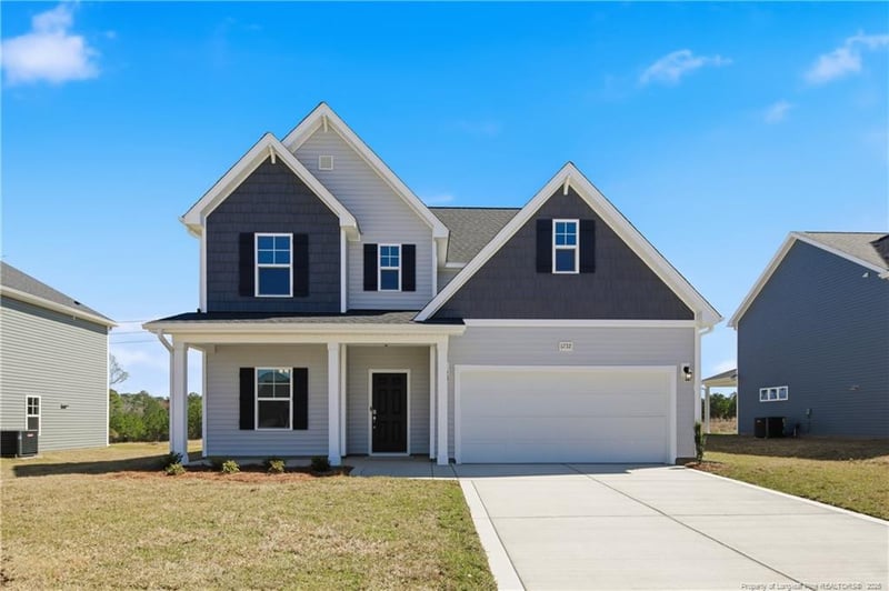 Listing details for 1732 Man O War Dr, Hope Mills, NC 28348 : Graham CC2058 C-No Stone...3Bedroom/2.5 Bath energy plus home with 2058SF! Main Level Features Dining/Flex room off of Foye. Kitchen with quartz countertops and stainless steel appliances (Gas range, microwave over range, dishwasher). Kitchen Island with sink overlooking into dining area and Great Room. Bar seating. Pantry. Dining area with access sliding door access to rear covered porch. Great Room with gas log fireplace and ceiling fan. Half bath with pedestal sink. Upper Level Features: Loft. Primary bedroom with trey ceiling and ceiling fan. Primary bath with double vanity sinks. Quartz countertops. Tub and separate shower. Water closet. Access to large walk-in closet. 2 additional bedrooms. Full hall bath with tub/shower combination and linen closet. Laundry room with closet. Security system. Professional Landscaping. 2 car garage. Community Pool house, pool and playground.