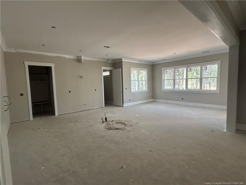 Listing details for 175 Landon Rg, Sanford, NC 27330 : Welcome the new addition to Copper Ridge Estates - The "Sev" floor plan is a favorite! This stunning Home sits on a 1.3-acre gorgeous waterfront lot. It offers breathtaking views and plenty of space to enjoy the outdoors. From the moment you arrive, the elegant double front doors welcome you into a thoughtfully designed home filled with light and style.The main floor features a luxurious primary suite, along with an additional bedroom and full bath, perfect for guests or multi-generational living. A private home office provides the ideal space for work or study.At the heart of the home is a beautifully designed kitchen showcasing a quartz waterfall island, plenty of cabinetry, double ovens and a spacious walk-in pantry. It's style and function make it perfect for both everyday living and entertaining. The dining area is perfectly positioned to capture the gorgeous water views, creating a peaceful setting for meals and gathering. Step outside to enjoy the scenery from the screened porch or relax and entertain on the generous deck, both offering incredible views of the water.Upstairs, you’ll find a large bonus room, two additional bedrooms and a full bath. This flexible space is ideal for family, guests, or hobbies. Need some extra space for storage? No problem. Upstairs has a large unfinished area for storage.Completing the home is a side-load garage, adding convenience while maintaining the home’s beautiful curb appeal. With its spacious layout, stunning water views, and exceptional features, this home offers the perfect blend of comfort, function and style!