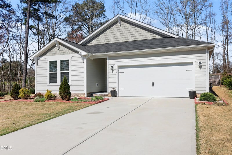 Listing details for 176 Harpers Landing Rd, Garner, NC 27529 : Beautiful 3-bedroom, single-level home featuring a desirable corner homesite and a thoughtfully designed layout with all bedrooms--including the spacious primary suite--on the main floor. This well-appointed home showcases numerous upgrades, such as 9-foot ceilings, luxury vinyl plank flooring, and a deluxe primary bathroom.