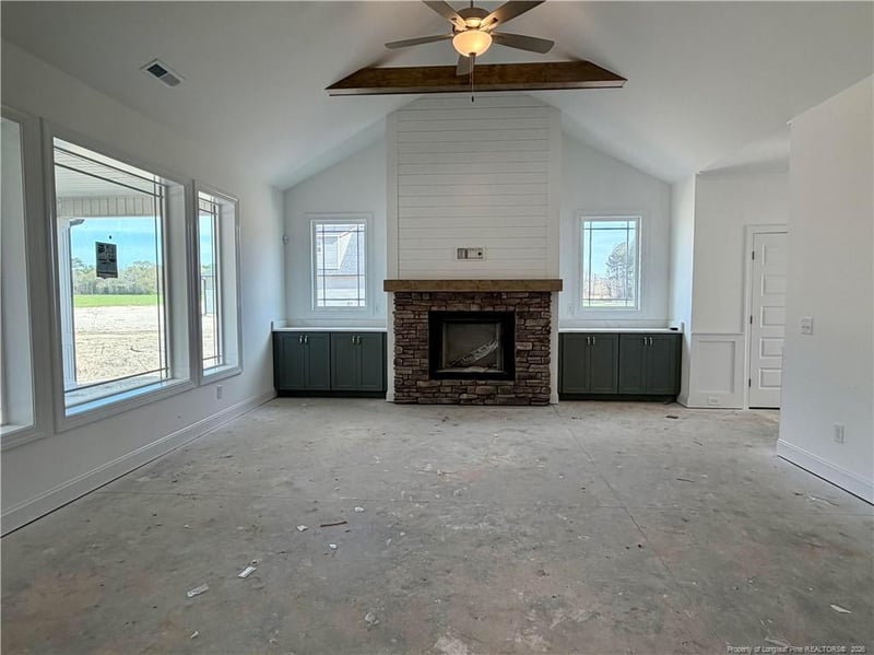 Listing details for 1768 Alderman Mill Rd, Dunn, NC 28334 : 1ew construction on 1 rural acre with NO restrictions in the desirable Plain View area of Sampson County! Just minutes to I-95 for easy commuting! This thoughtfully designed home features 3 bedrooms, 3 full baths, and a spacious bonus room. The open-concept living area offers vaulted ceilings, a cozy fireplace, and custom built-in cabinets. The kitchen is beautifully appointed with a farmhouse sink, tile backsplash, stainless steel appliances, and a large pantry, perfect for everyday living and entertaining. The primary suite is a true retreat with dual walk-in closets and a stunning, spa-like bath. Upstairs, the bonus room with full bath and closet provides flexible space ideal for a guest suite, home office, or recreation area. Outback enjoy a large covered porch and separate patio and country views! Come enjoy the privacy and space of country living! Constructed by local and trusted Cumberland Homes. *Check back for updated photos as home is nearly complete