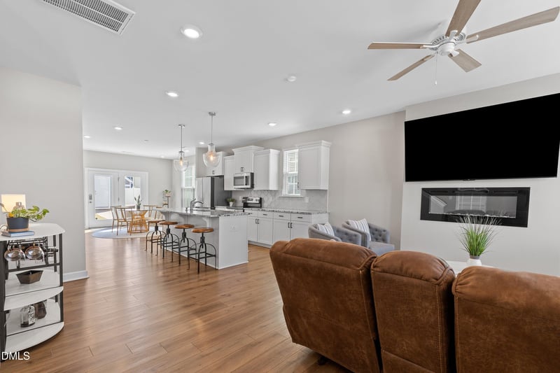 Listing details for 177 Buckhorn Branch Pk, Clayton, NC 27520 : STUNNING MODERN CRAFTSMAN IN PRIME CLAYTON LOCATION! This immaculate 3BR/2.5BA home features an expansive open-concept main level highlighted by durable wide-plank flooring and a gourmet kitchen equipped with granite countertops, and a dedicated first-floor office space perfect for remote work. The light-filled family room is anchored by a sleek, wall-mounted electric fireplace, while the second floor serves as a private retreat with a spacious Primary Suite boasting a double-tray ceiling and a spa-like ensuite. Functional living is prioritized with an upstairs laundry room, a fully fenced backyard with a private patio, and a rare detached two car garage. Minutes from downtown Clayton's dining and shopping, this turnkey residence perfectly blends contemporary style with everyday convenience.