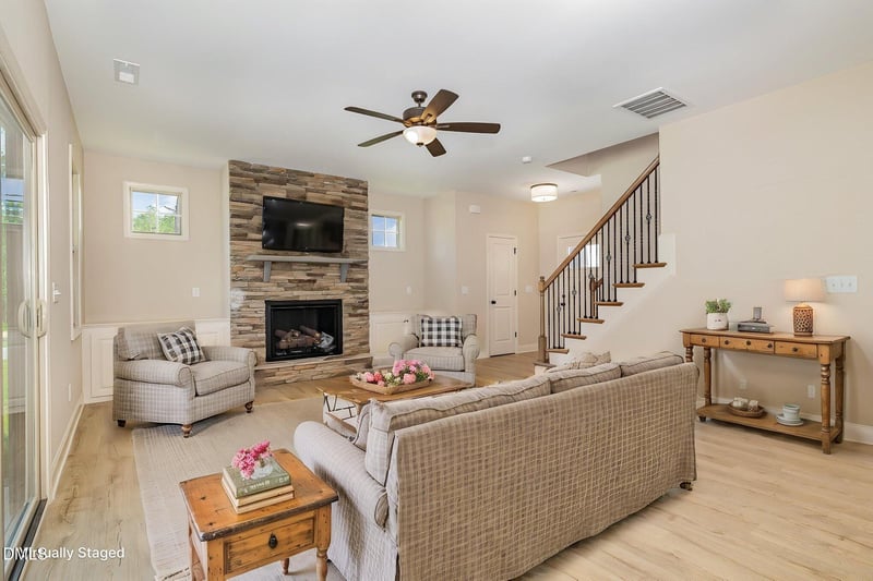 Listing details for 18 Bonnybrook Ct (Lot 9), Selma, NC 27576 : Move-In Ready! New SS Side by Side Fridge! Welcome to Pine Tree Knolls at River Run! Brand NEW home with 3 car garage! Beautiful 2 story home with finished bonus room! Open concept living room w/ gas fireplace and kitchen with dining room. SS appliances and granite countertops with island. The primary suite features a spacious ensuite with dual vanity and walk in shower. Two extra bedrooms and additional unfinished storage. This is an opportunity to own a beautiful home that offers both comfort and style, while also being surrounded by nature's beauty.