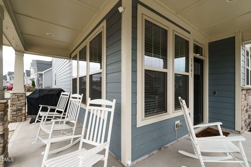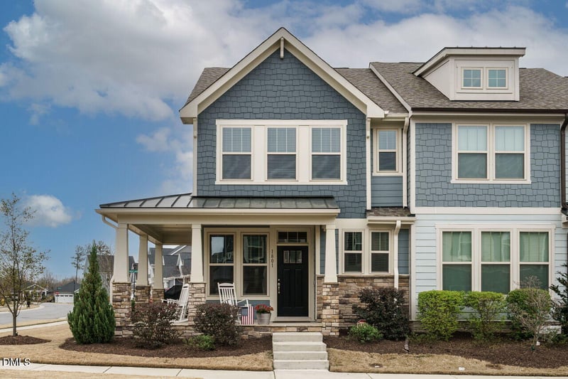 Listing details for 1801 Shady Oaks Dr, Wendell, NC 27591 : A townhome with a rocking chair front porch? Yes, please. This end-unit townhome is filled with natural light you simply don't get in interior units. The open-concept layout flows effortlessly, making everyday living easy and entertaining even better. The kitchen is modern and functional, perfectly positioned to stay connected to everything happening in the main living space. Upstairs, the primary suite offers a true retreat with a walk-in closet and an ensuite bath featuring a double vanity and walk-in shower. It's the kind of space you'll actually look forward to at the end of the day. One of the best parts? The rear-entry garage keeps the front of the home clean and inviting, so you can fully enjoy that front porch lifestyle. Whether you're sipping coffee, catching up with neighbors, or heading over to Hammock Park (yes, real hammocks included), this location makes it easy to slow down and enjoy where you live. And speaking of location... you're just minutes from the Farmhouse, Treelight Square, and all the trails, parks, and community events that make Wendell Falls so special. Walk, bike, or hop on your golf cart to dinner, coffee, or a night out. End unit. Natural light for days. And a lifestyle that's hard to beat.